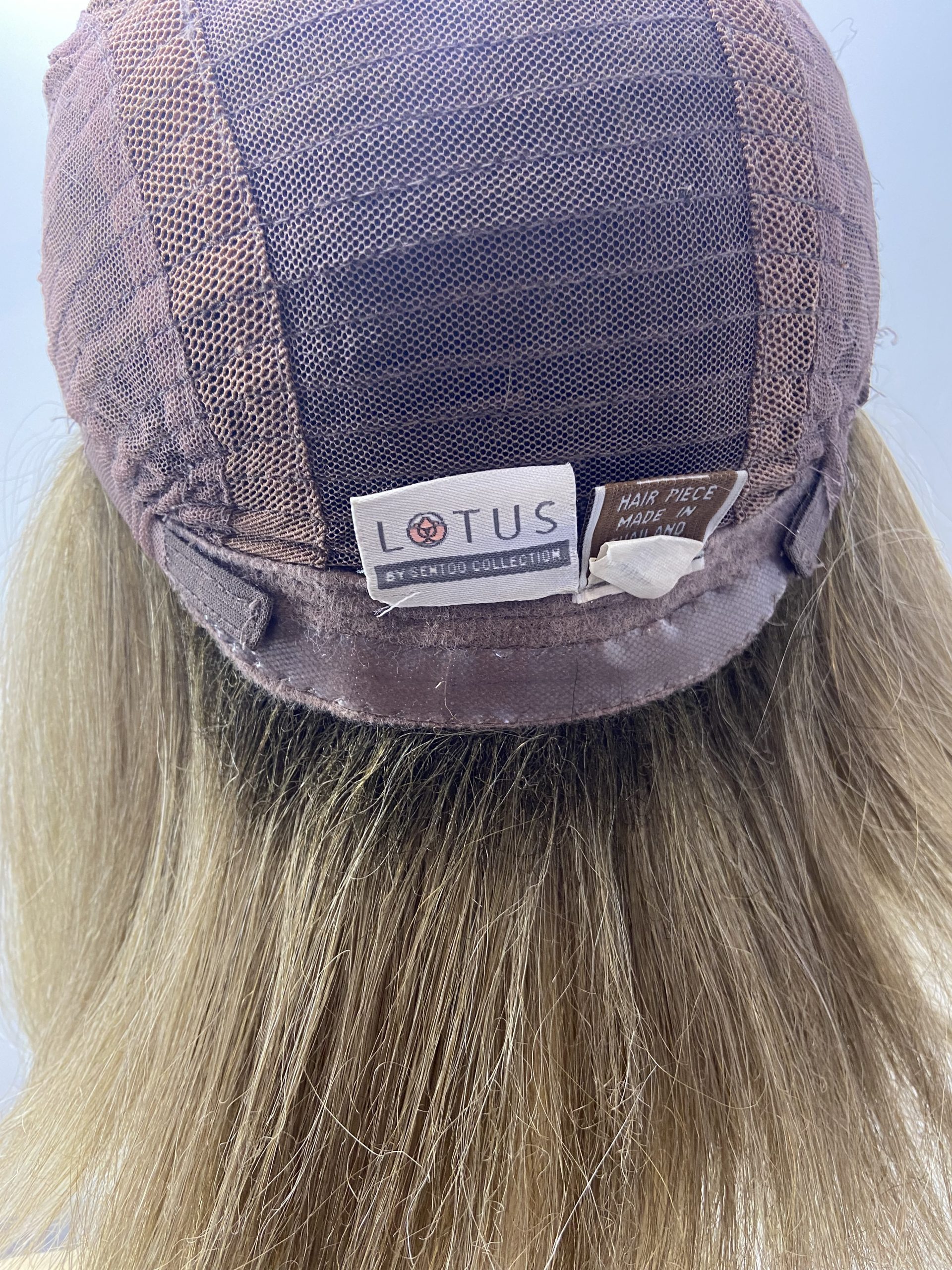Rooted soft cap blonde wig.