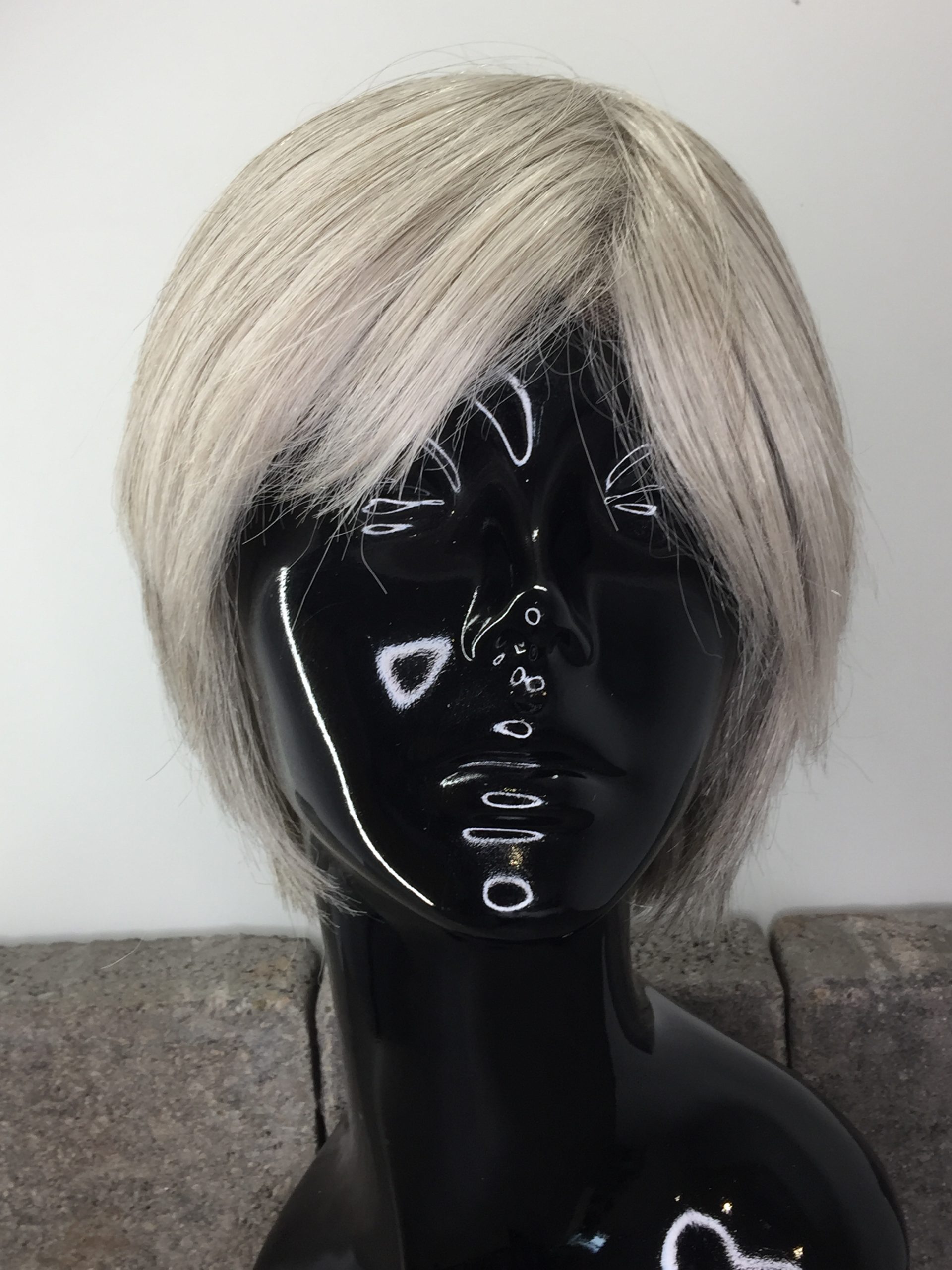Stylish short grey wig. Soft cap.